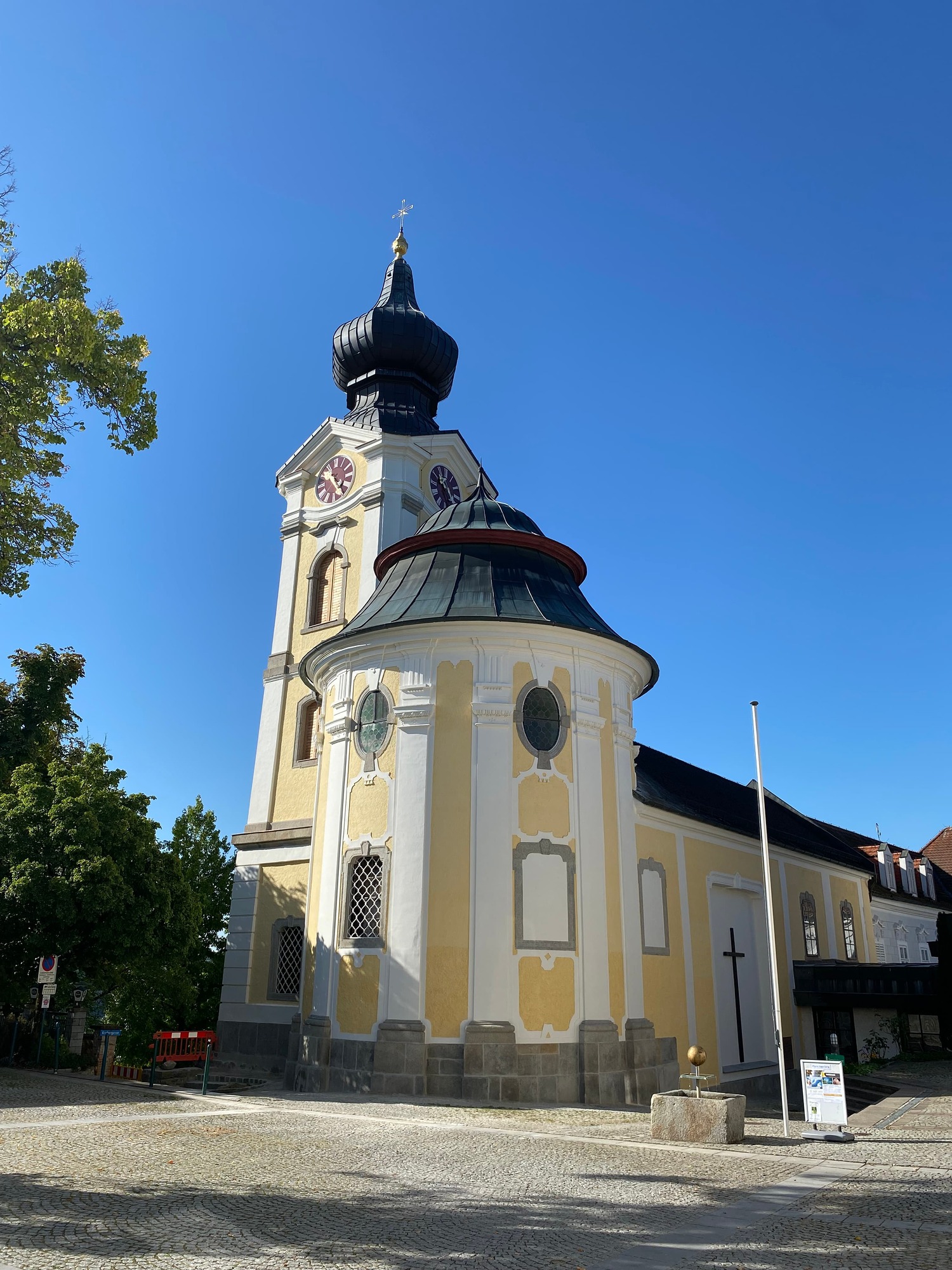 Die Sanierung der Fassade der Schlosskapelle in Hagenberg wurde rechtzeitig vor dem Erntedankfest 2023 fertiggestellt. Die harmonische Auswahl der Oberflächenfarben hat das gesamte Erscheinungsbild verbessert.