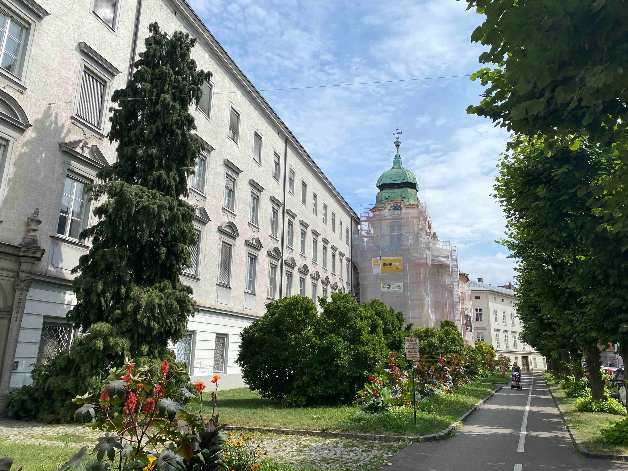Anläßlich des 300-Jahr-Jubiläums der Kirchweihe wird die Priesterseminarkirche in Linz derzeit außen saniert. Die Arbeiten sollen bis Herbst 2024 beendet sein.