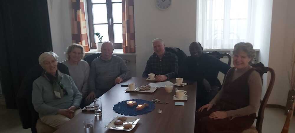 Pfarrer Emmanuel wird Pfarrer Cyprian während seines fünfwöchigen Urlaubs vertreten. Mitgleder des Pfarrgemeinderates hießen Emmanuel bei einem Kaffee willkommen.