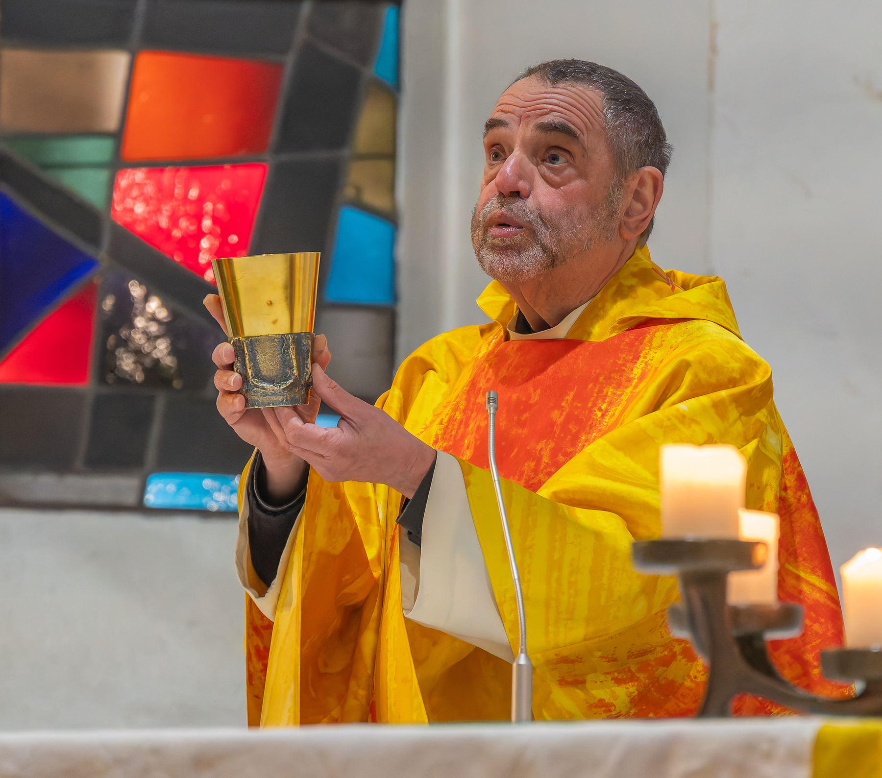 Die bisher gesammelten Spenden wurden von einer Gruppe symbolisch an P. Severin überreicht.