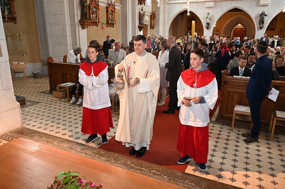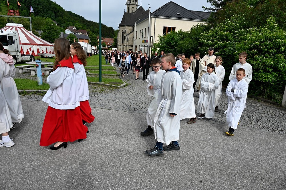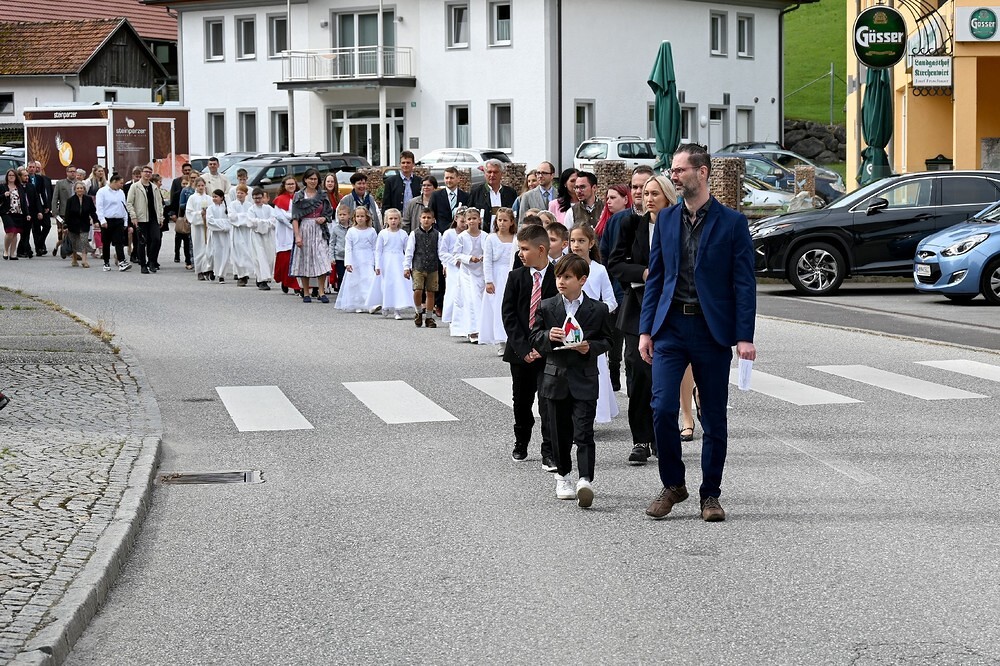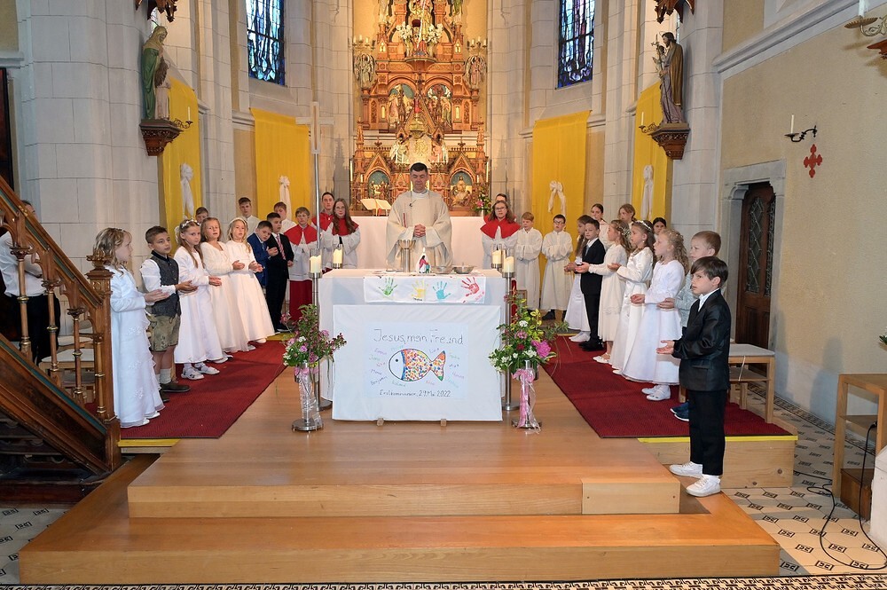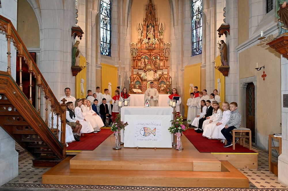 Die 13 Kinder haben sich seit dem 1. Fastensonntag mit der Tauferneuerung in der Pfarrkirche, im Religionsunterricht und bei den Gruppenstunden auf dieses große Fest vorbereitet. Sie haben sich dazu das Thema "Jesus, mein Freund" ausgesucht. Pater Johannes Herz von den Jesuiten in Linz hat die Erstkommunion mit den Kindern gefeiert. In seiner Predigt sprach er davon, wie wichtig Freundschaft in unserem Leben ist. Im Anschluss gab es für die Kinder ein kleines Frühstück am Schwester Mercedes-Platz. Am Freitag, 10.06.2022 war die Abschlussandacht in der Kirche.