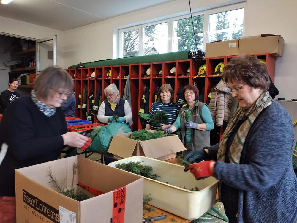Ganze 20 fleißíge Frauen und 2 tüchtige Männer bewerkstelligten es 400 Palmbuschen für die Pfarrbevölkerung im Einsatz für die KFB zu binden. Um diese große Anzahl an Palmbuschen binden zu können, war vorab schon viel Arbeit durch Sammeln der verschiedenen Materiealien notwendig. Danke an alle Unterstützer, von denen wir Grünschnitt erhielten. Bereits um 09:00 Uhr wurde mit dem Binden gestartet. Nach einer mittäglichen Pause ging das Handwerk schließlich für die freiwilligen Frauen und Männer weiter.