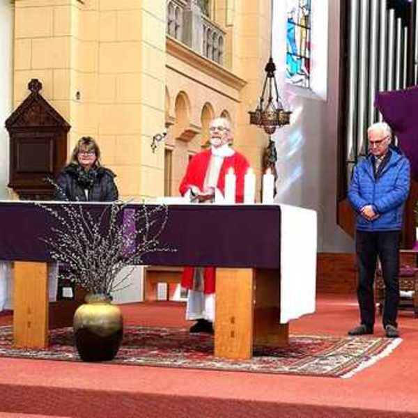 Auch wenn wir den Palmsonntag nicht gemeinsam gefeiert haben, haben wir ihn doch gemeinsam begangen. Als Zeichen der Verbundenheit werden hier einige Fotos von Palmbuschen oder Palmsonntagsfeiern daheim gezeigt. Auch in unserer Kirche wurde gefeiert von einer kleinen stellvertretenden Feiergemeinschaft.
